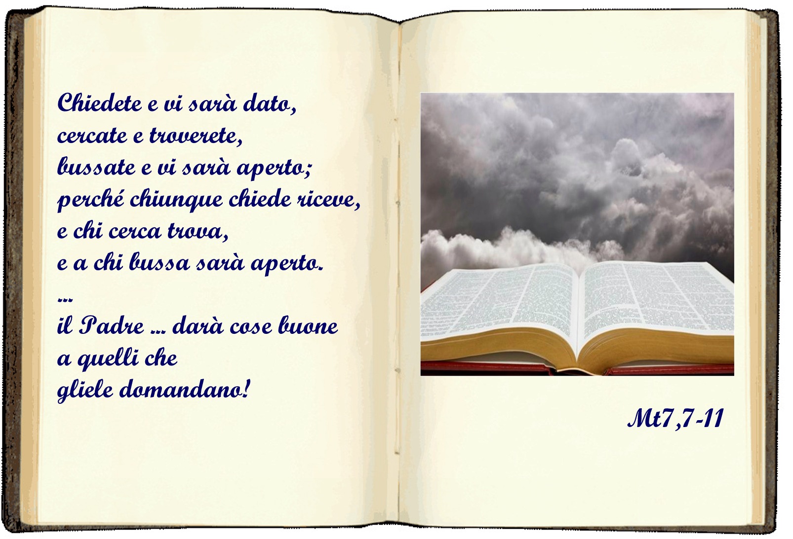 Altre fonti che riteniamo autorevoli ci dicono: “CHIEDI E TI SARA’ DATO”! Pochi però continuiamo il messaggio sottolineando che il Padre non nega nulla al proprio figlio ma solamente se ciò che è “buono” per lui.