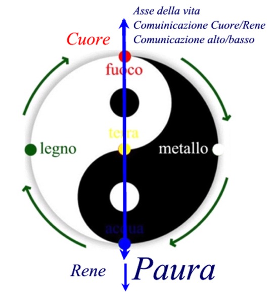 – abbiamo troppa paura che limita la nostra vita, attacca la nostra sicurezza, rompe le comunicazione dell’asse della vita, di Cuore e Rene, per cui gli Spiriti, Shen, del Cuore non hanno più supporto e la condotta diviene insensata,